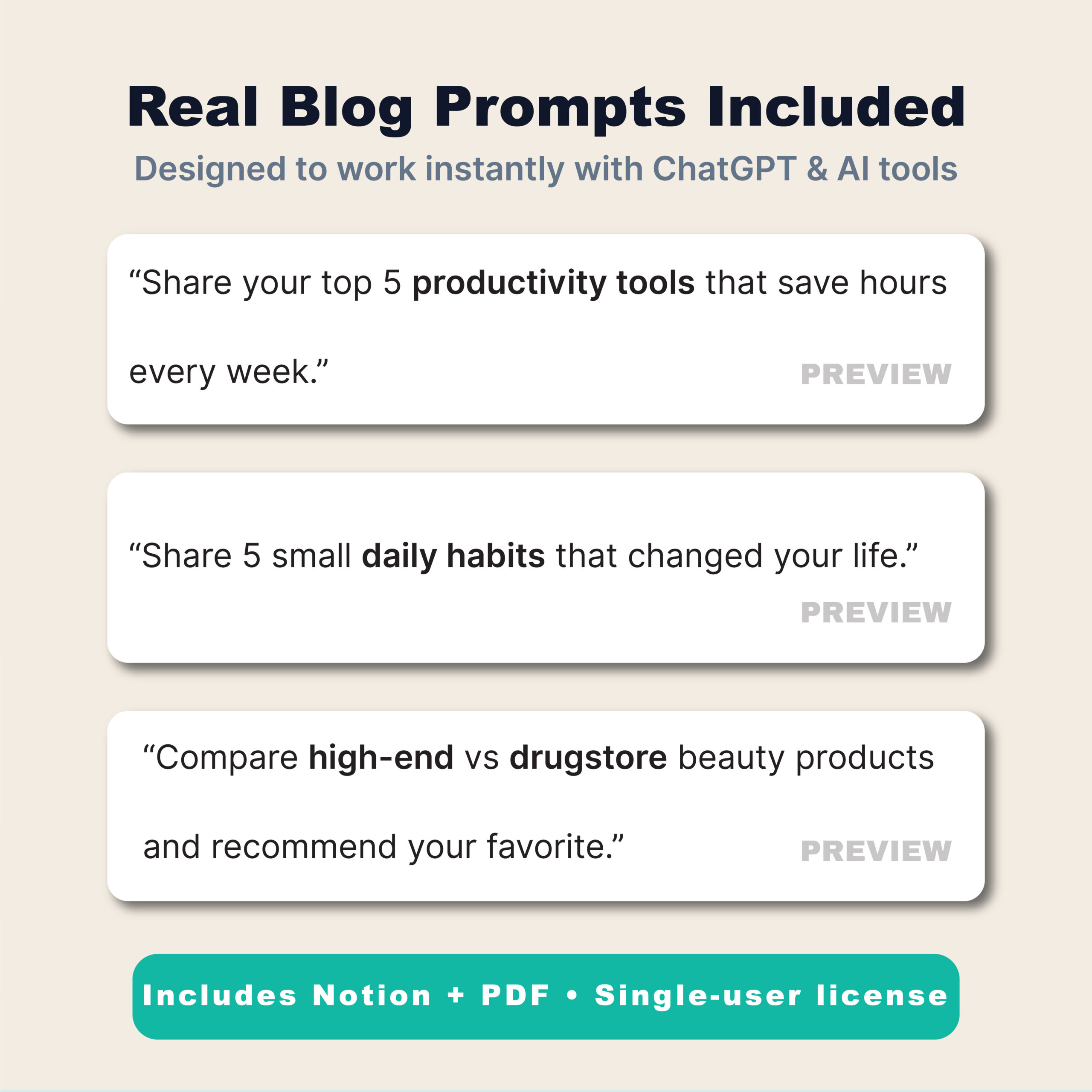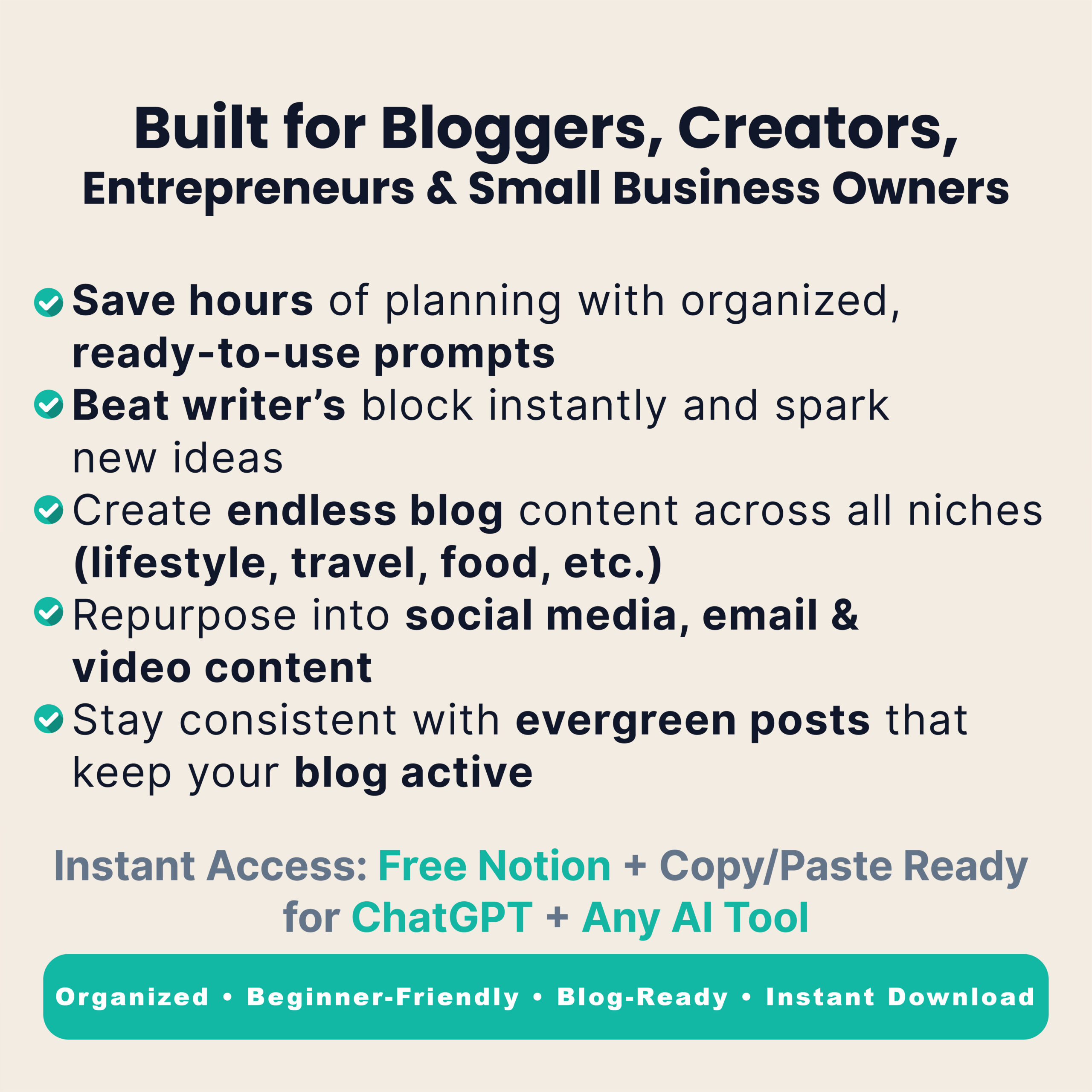 Blog Prompt Vault – Volume 1 | 100 AI Blog Writing Prompts for Evergreen Niches (Instant Download, PDF + Notion)