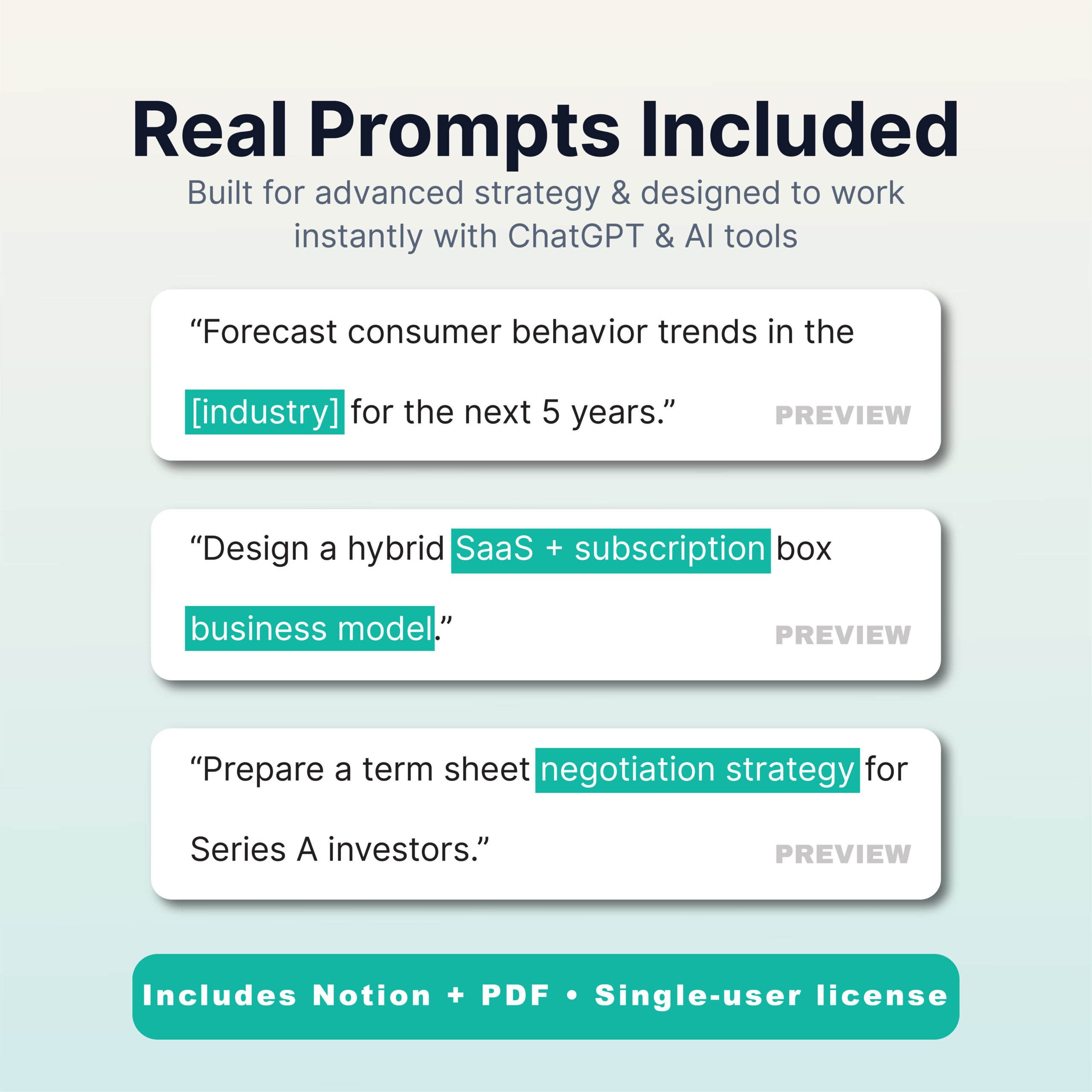 Business Plan & Strategy Prompt Vault | 350 Advanced AI Prompts for Scaling, Innovation & Growth Strategy | PDF + Notion Digital Download