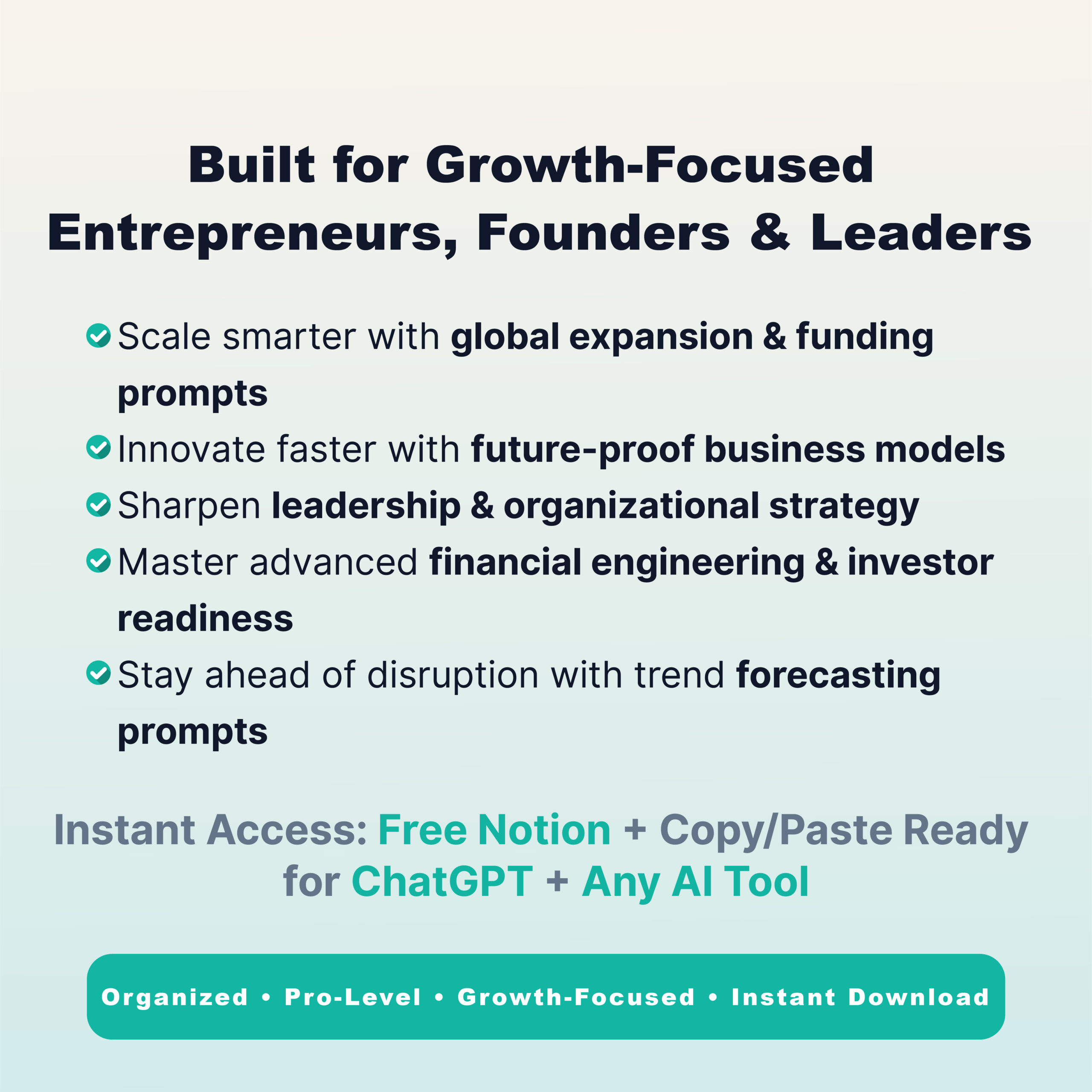 Packed with 350 advanced AI prompts, this vault is designed for entrepreneurs, leaders, and business strategists who want to scale, innovate, and future-proof their ventures.