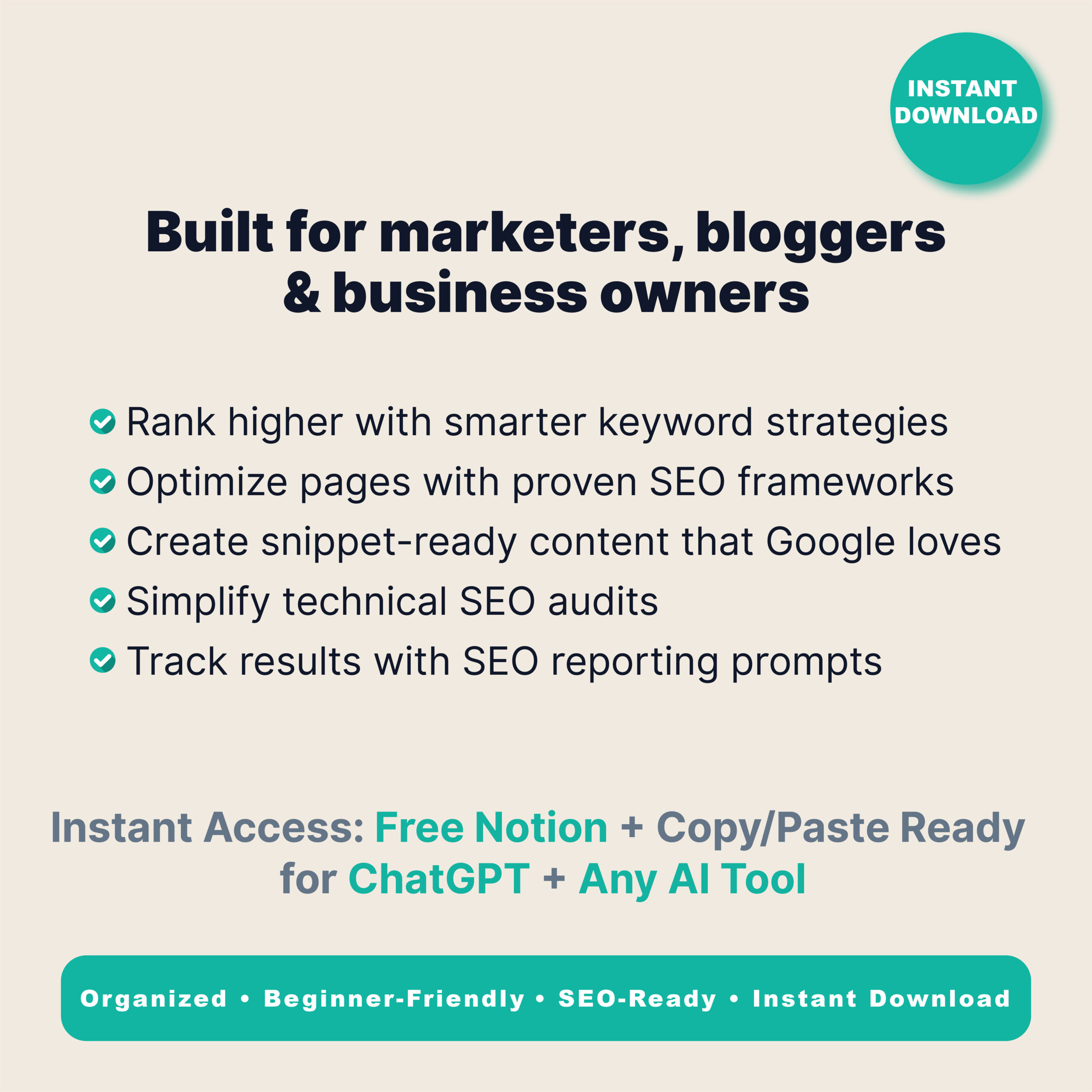 Struggling with SEO? Volume 1 gives you 150 AI prompts designed to simplify keyword research, on-page optimization, and technical fixes. Perfect for bloggers, entrepreneurs, and small businesses who want to attract traffic without wasting hours on SEO guesswork.